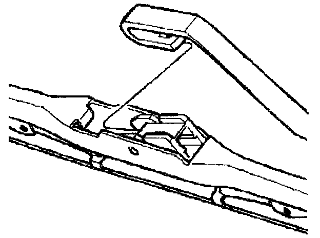 1. Install the wiper blade onto the wiper arm by placing the arm hook through the opening in the wiper blade. Slide the arm hook onto the blade retaining clip until it clicks into position