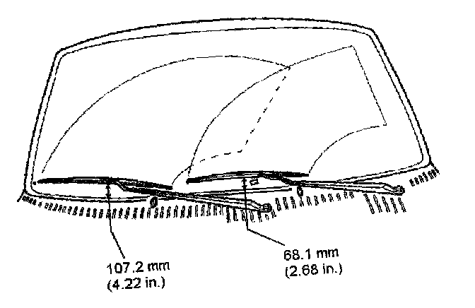 3. Install the wiper arm onto the pivot shaft while aligning the wiper blade with the locating marks on the windshield. If the windshield does not have locating marks, locate the center of the blades to the distance shown up from base of the windshield.