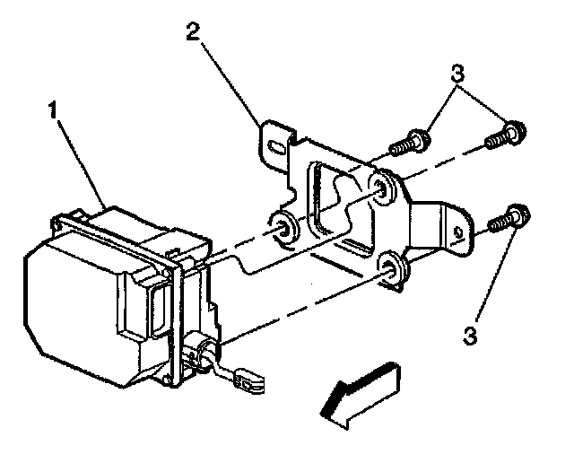 6. Remove the cruise control module bracket bolts (3) from the module bracket (2) and module (1).