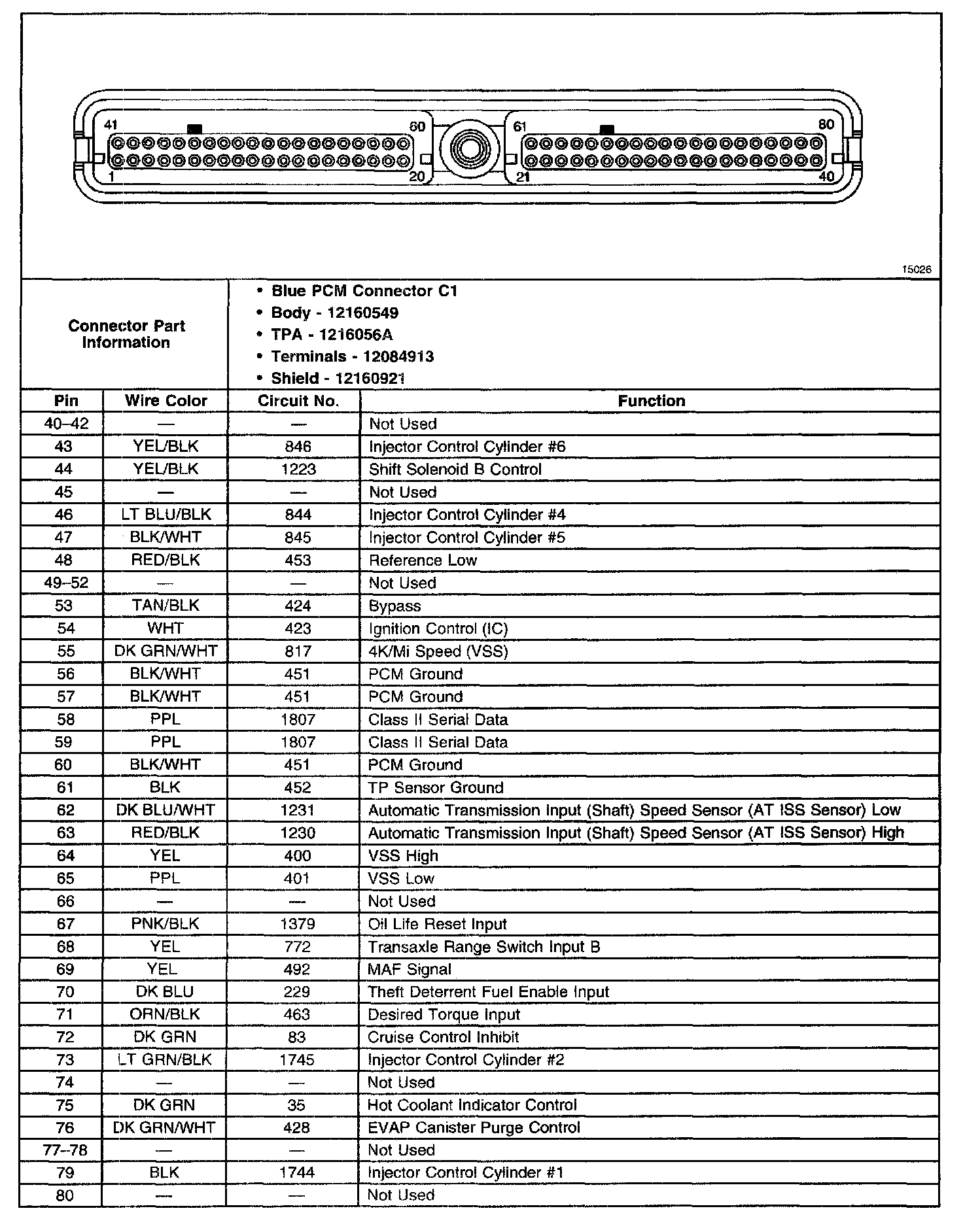 PCM 80-Way Blue Connector C1 Details (Part 1 Of 2):