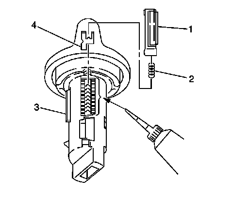 1. Remove the ignition lock cylinder core from the ignition lock cylinder housing.