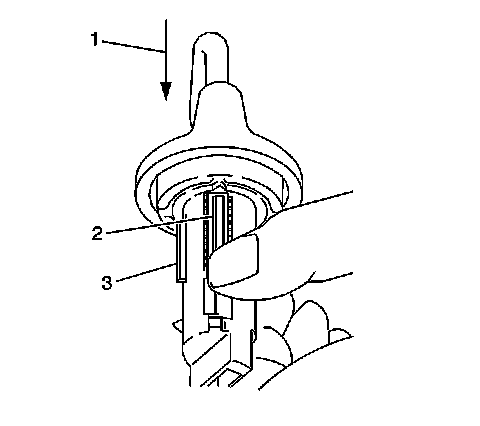 13. Press the retainer (1) down until the retainer is fully seated in the lock cylinder core.