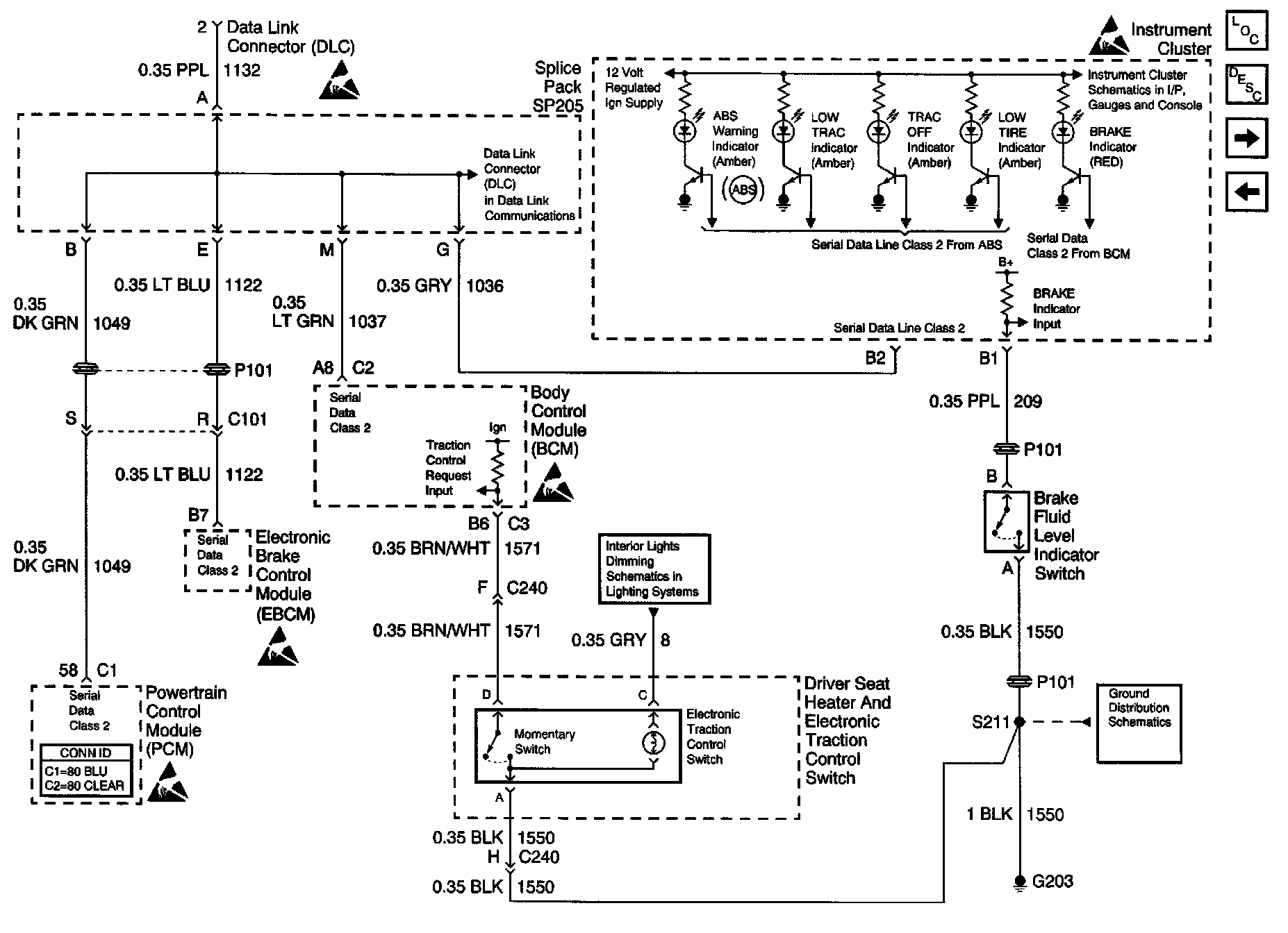 ABS Schematics (IPC Class 2 Serial Data Inputs, EBCM Traction Control Request and Electronic Traction Control Switch):