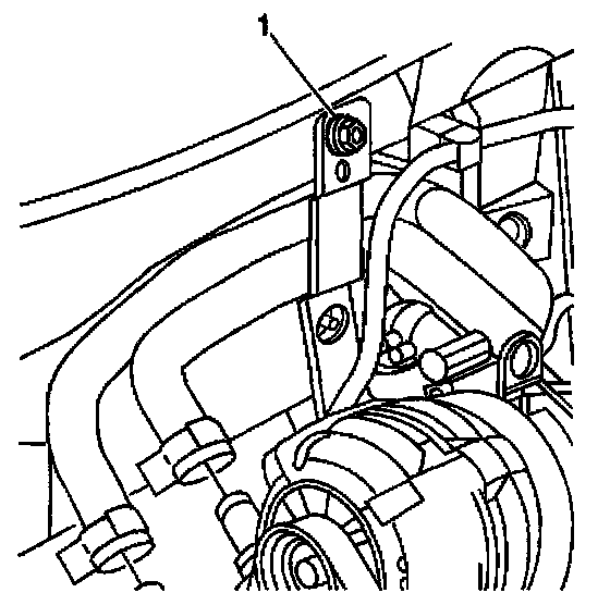 5. Remove the heater hose support bracket nut (1).