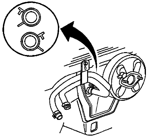 3. Use J 38185 in order to position aside the heater hose inlet and/or outlet clamp at the pipe adapter.