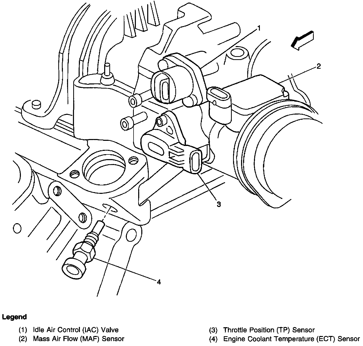 Left front of the engine, part of the throttle body assembly