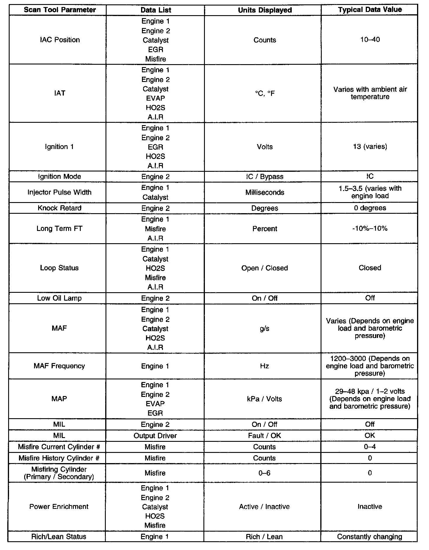 ^ The throttle is closed, unless checking a value at a specified RPM.