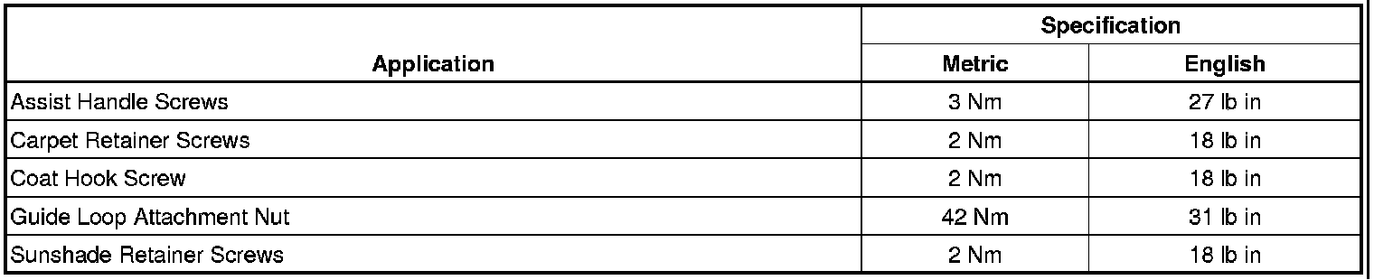Interior Trim - Fastener Tightening Specifications