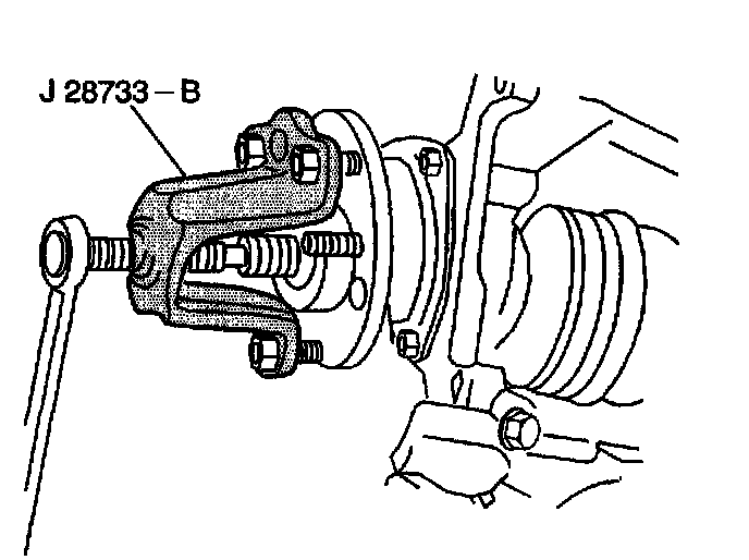 8. Use three wheel nuts in order to attach the J 28733-B to the wheel bearing/hub.