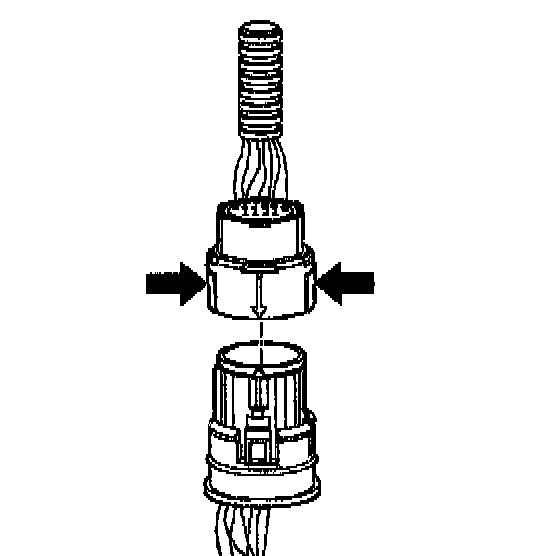 ^ In order to reinstall the external wiring connector, first orient the pins by lining up the arrows on each half of the connector. Push the connector straight down into the transmission without twisting or angling the mating parts.