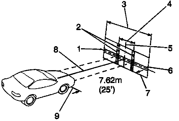 ^ The aiming area should be darkened and large enough to accommodate the vehicle and an additional 7.62 m (25 ft) measured from the face of the headlamp capsule lenses to the front of the screen.