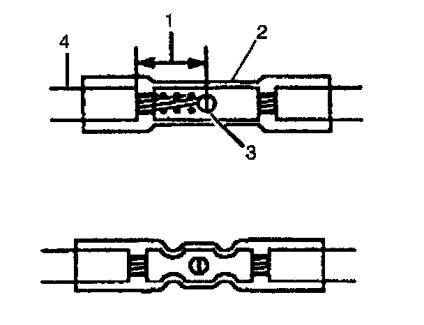 9. Insert the wires into the splice sleeve until the wire hits the barrel stop. The splice sleeve has a stop in the middle of the barrel in order to prevent the wire from passing through the splice (3).