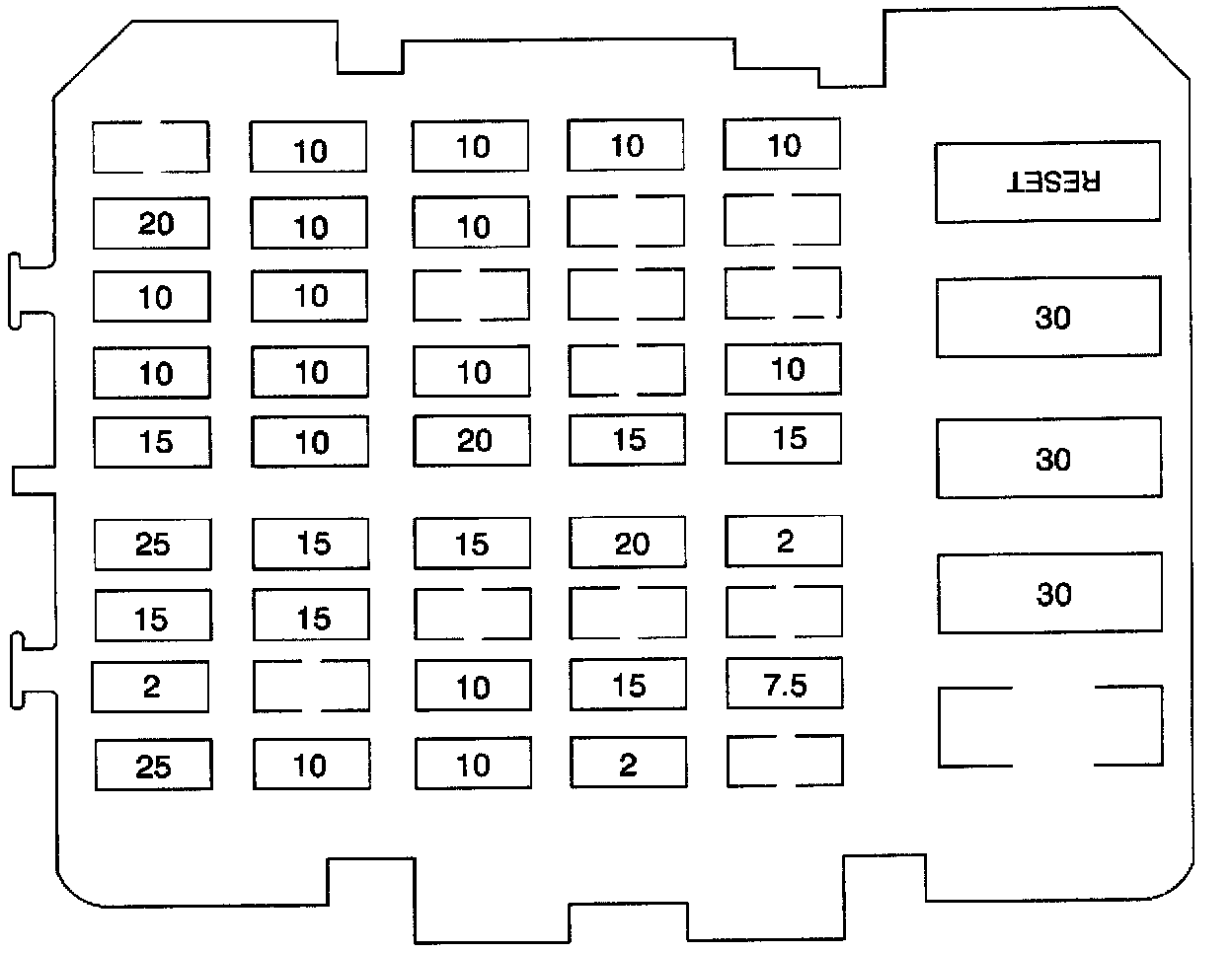 Instrument Panel Fuse Block, Top View: