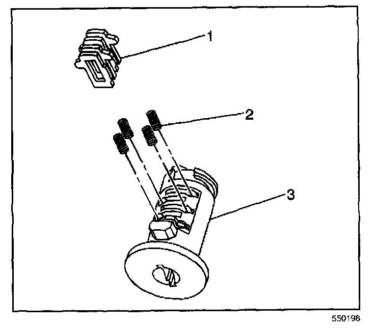 The IP storage compartment lock only uses four of the ten cut positions 7-10. A retainer tumbler is used in the IP storage compartment lock to retain the lock cylinder in the latch assembly. This retainer tumbler is not moved by the key. The retainer tumbler occupies the slot closest to the head of the IP storage compartment lock cylinder and should come already installed in the cylinder.1. Hold the cylinder (3) 50 that the side with four tumbler spring wells is facing up.