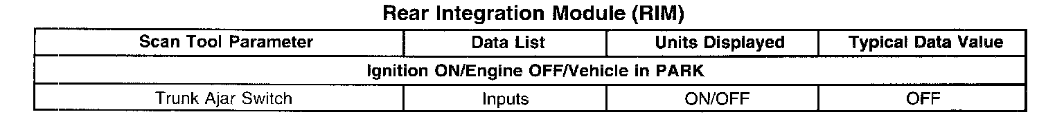 Scan Tool Data List - Rear Integration Module (RIM)