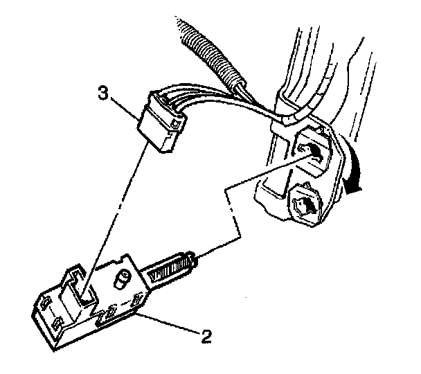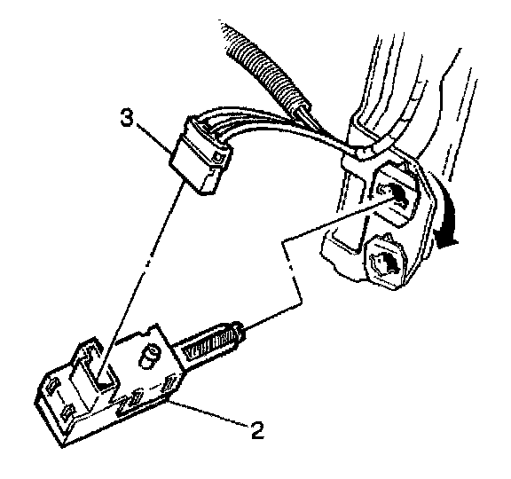 5. Disconnect the electrical connectors (3) from the stoplamp/ABS/shift lock switch (2).
