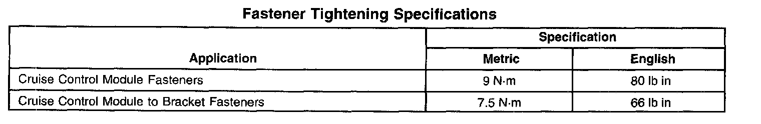 Fastener Tightening Specifications: