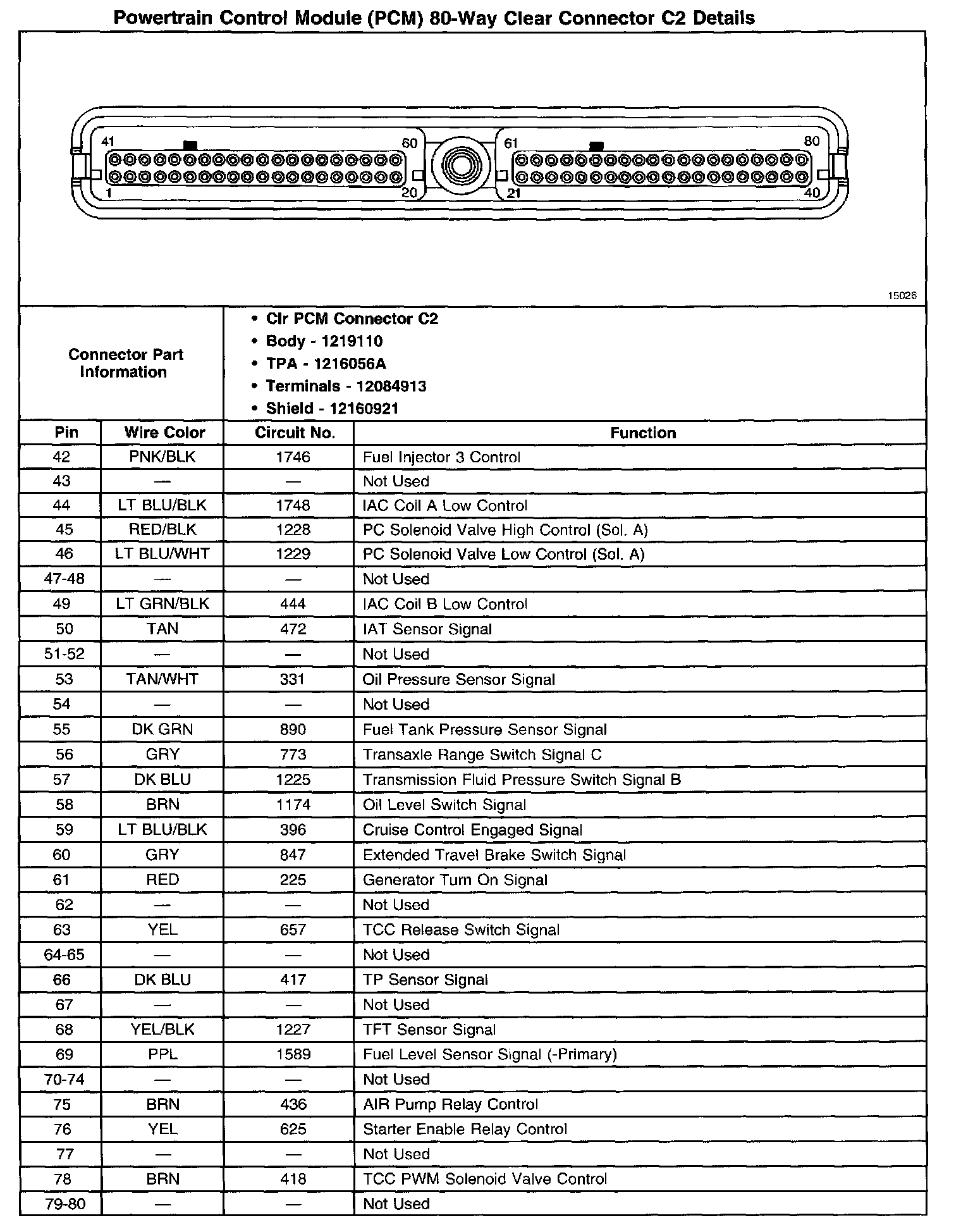 Powertrain Control Module (PCM) 80-Way Clear Connector C2 Details (Part 1 Of 2):