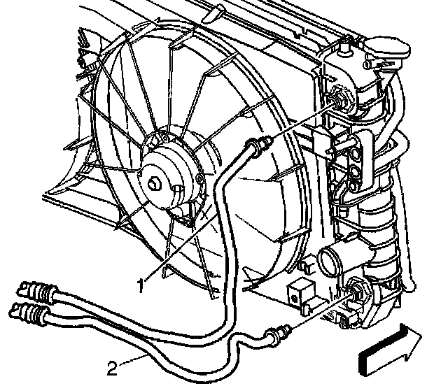9. Disconnect the upper (1) and lower (2) transaxle oil cooler pipes from the radiator using the J 41623-A.