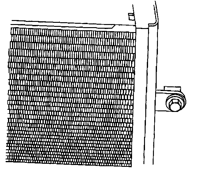 Important: The bolt retaining the condenser to the radiator end tank is a 15 mm (0.6 inch) length and should be the ONLY bolt used upon reinstallation. The use of a longer bolt will damage the radiator end tank.