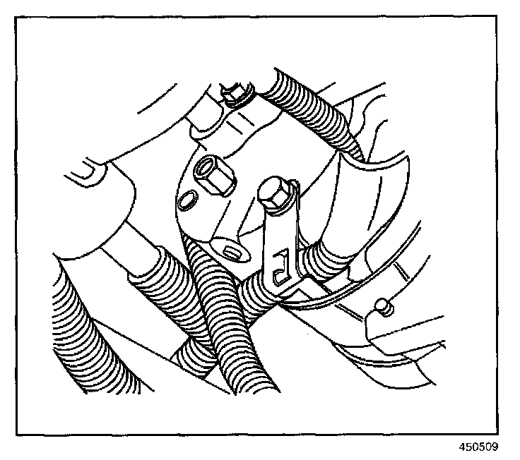 8. Install the retaining bolt to the wiring harness bracket.