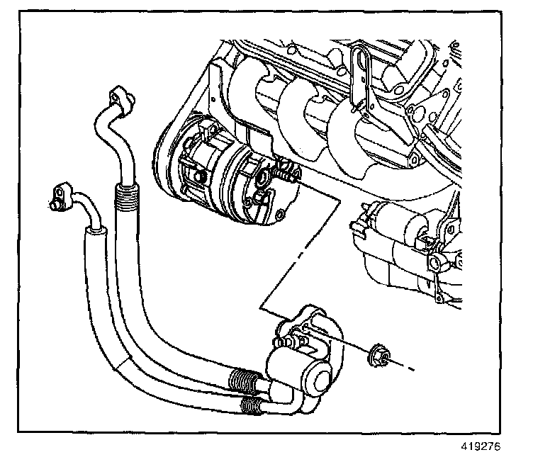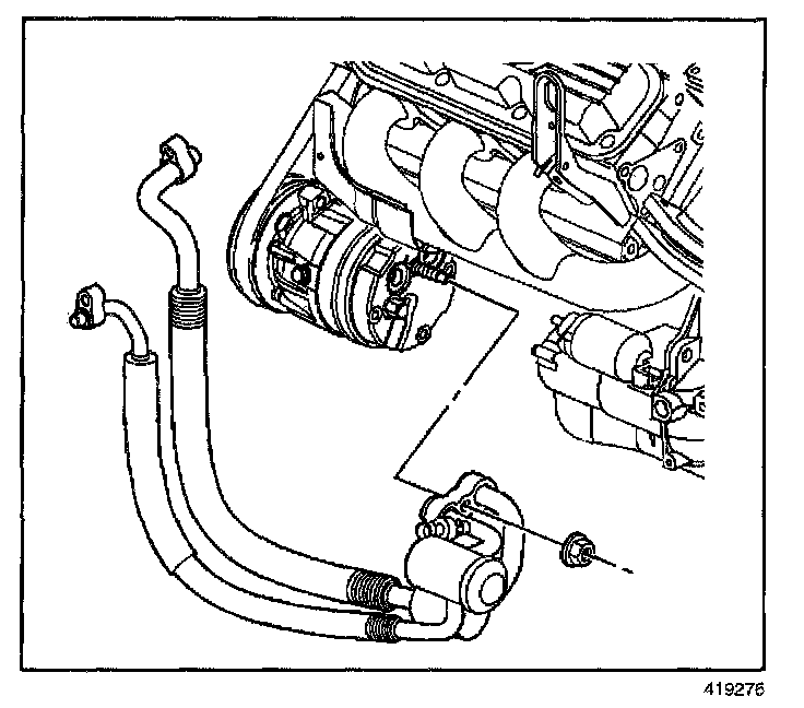 11. Remove the A/C compressor hose from the compressor.