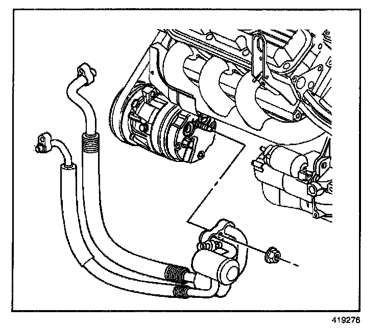 5. Disconnect the A/C compressor hose assembly from the compressor.