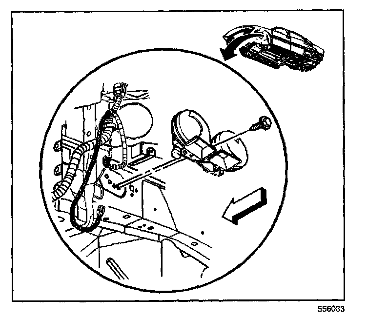 3. Remove the fastener securing the horn assembly to the left front frame rail.