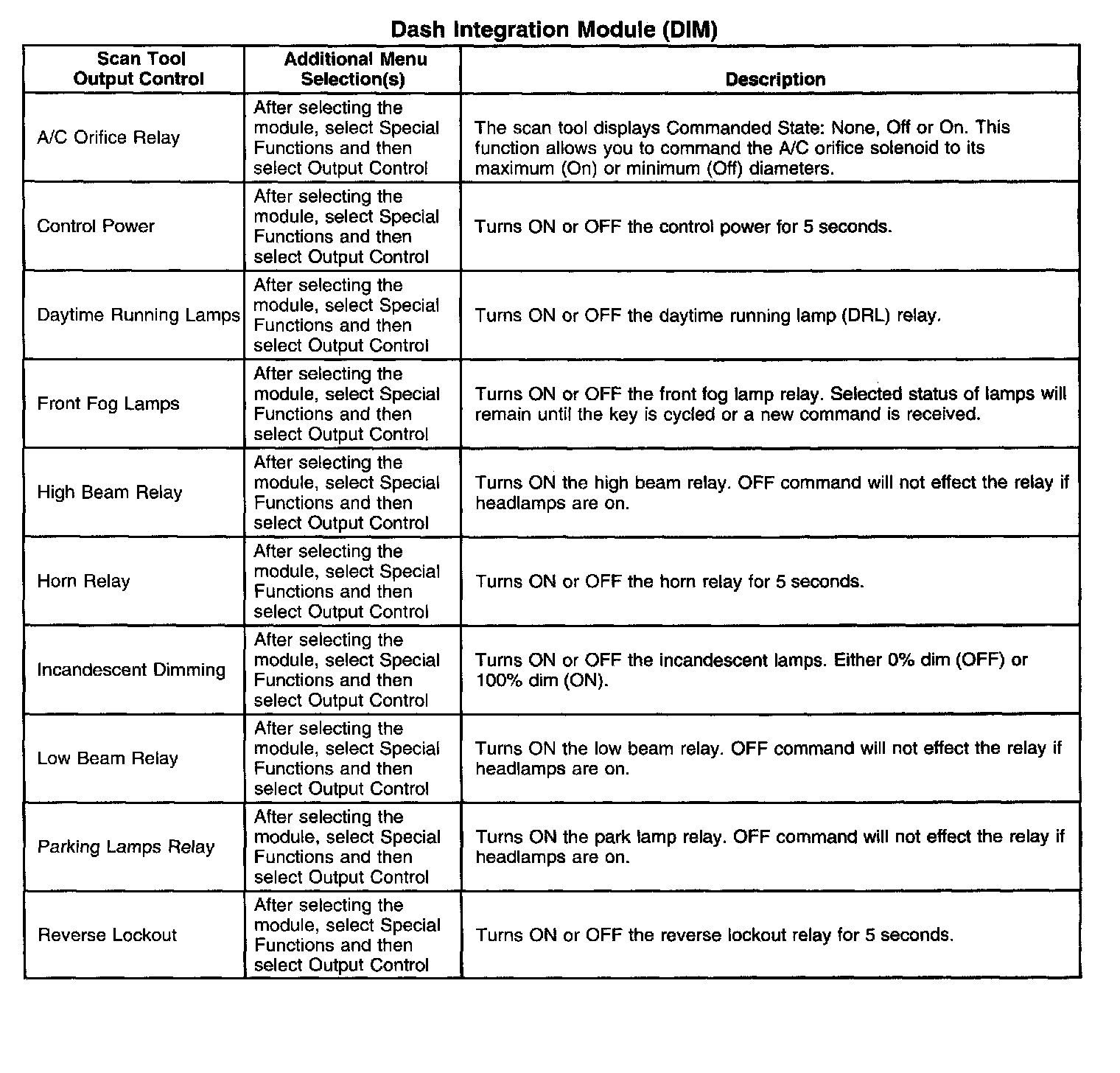 Scan Tool Output Controls
