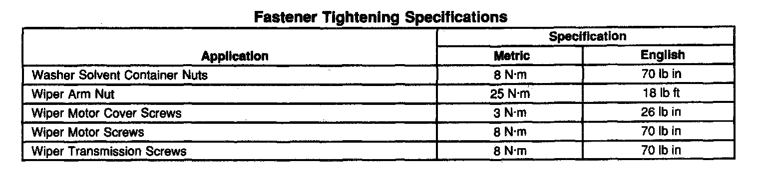 Fastener Tightening Specifications: