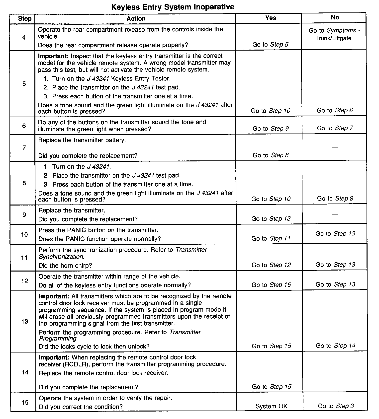 Keyless Entry System Inoperative