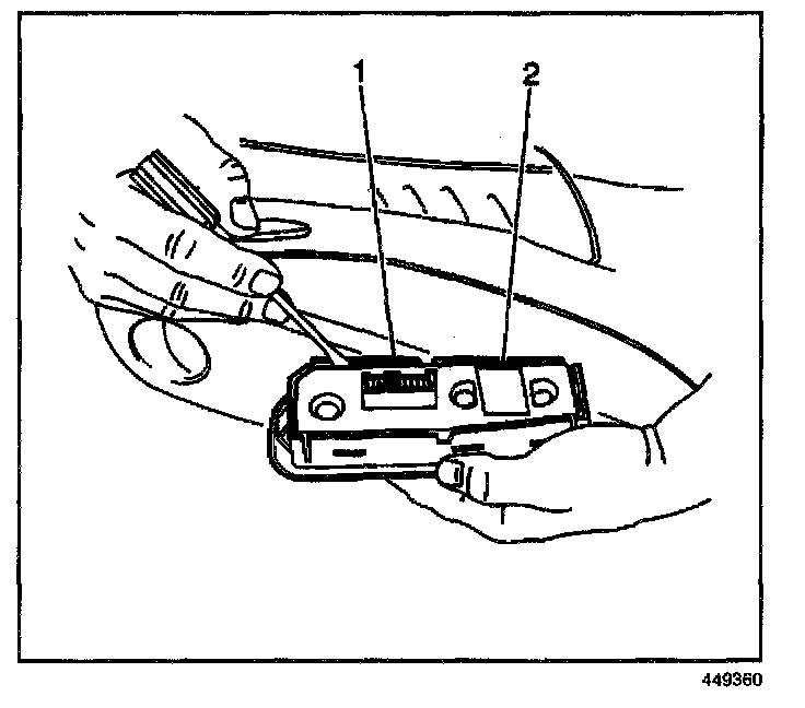 5. Remove the switch pack (2) from the switch plate (1) by releasing the retainer tabs with a small flat-bladed tool.