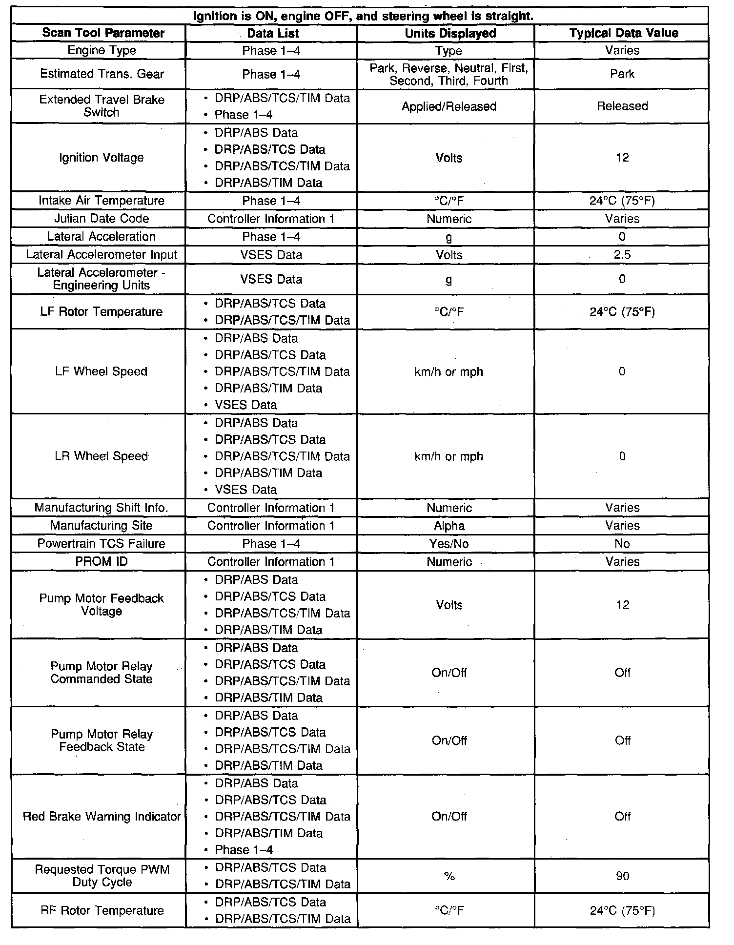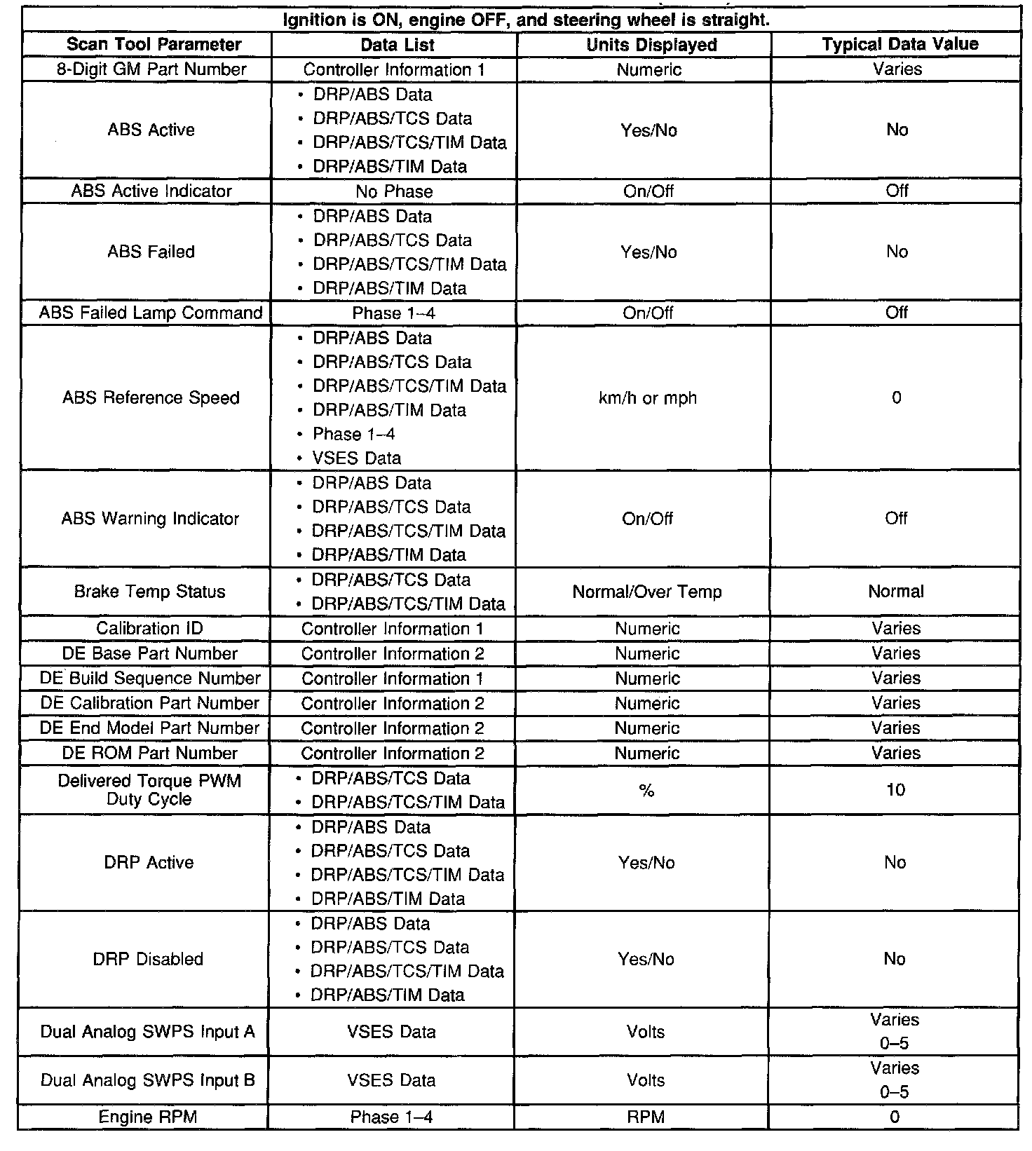 Scan Tool Data List