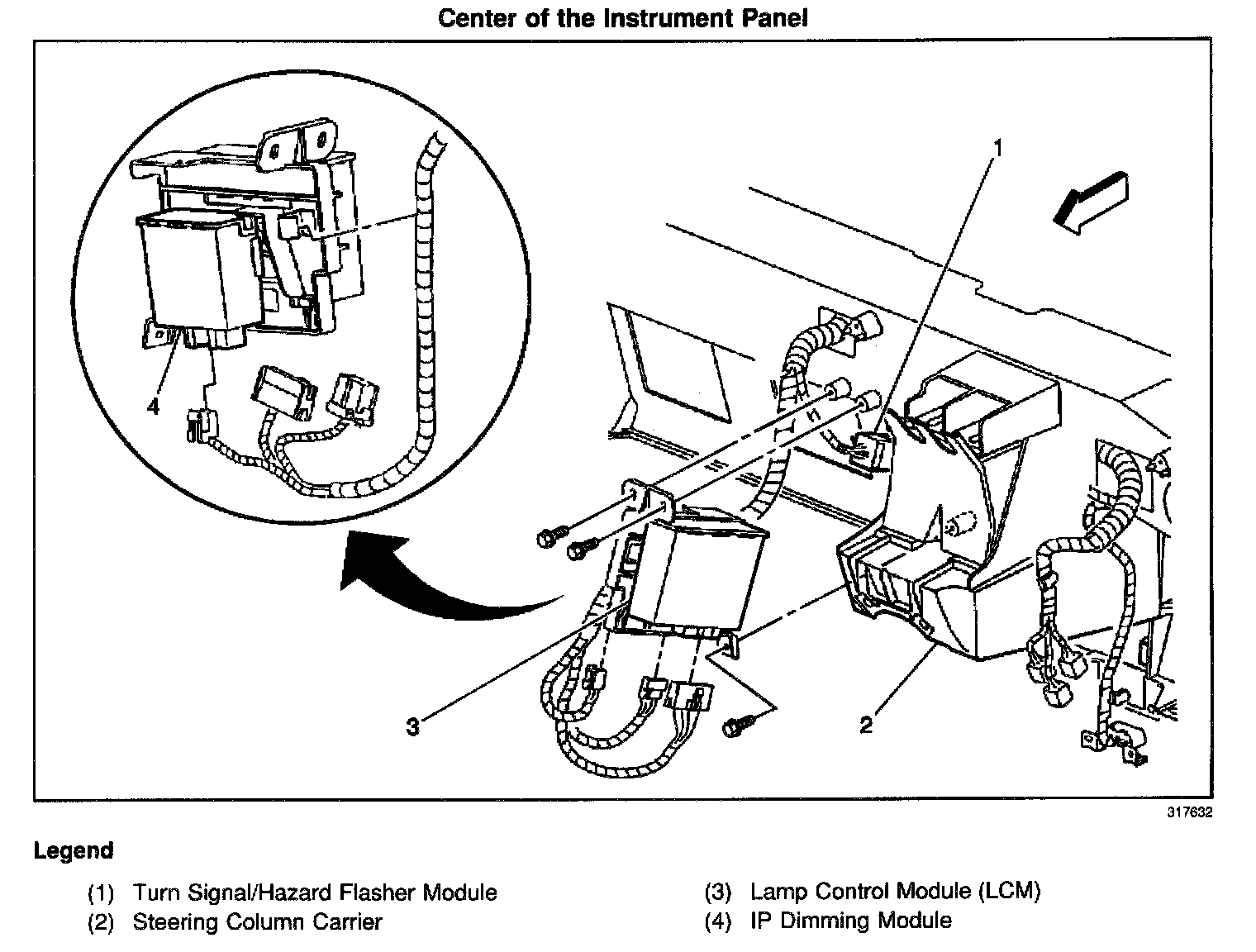 Under the left side of the IP, to the right of the steering column