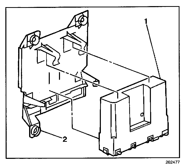 2. Install the programmer (1) into the retainer on the bracket (2).