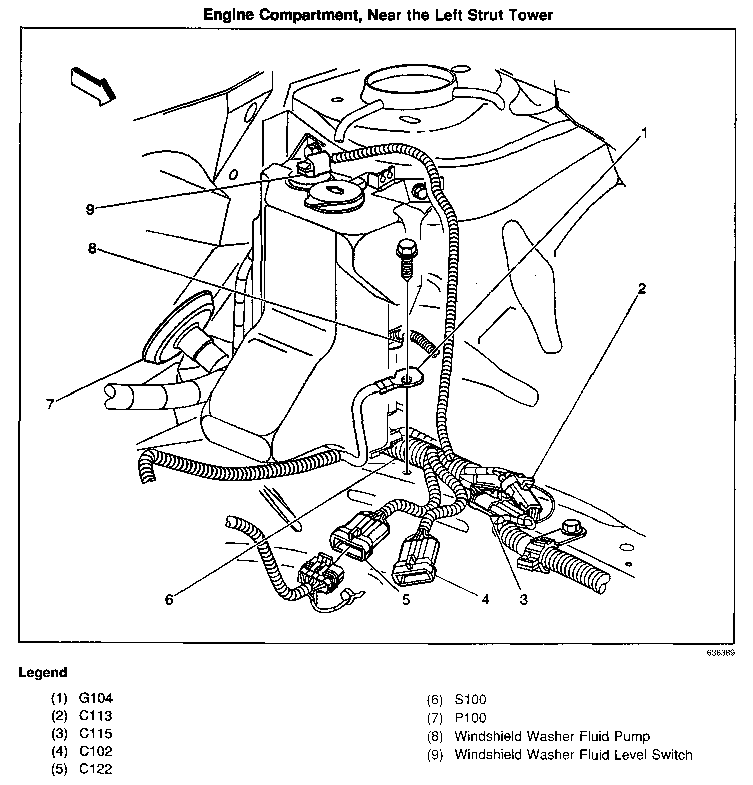 In the left rear of the engine compartment, in the top of the windshield washer reservoir