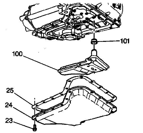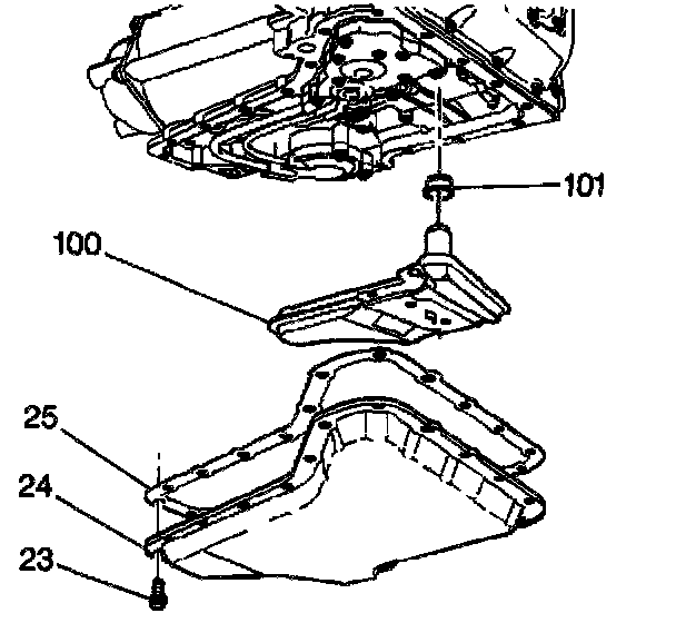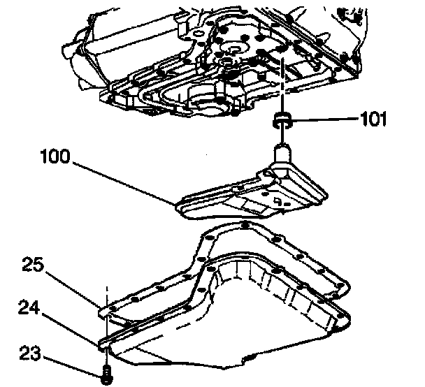 4. Install the gasket (25) and the oil pan (24).