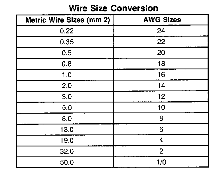 Wire Size Conversion: