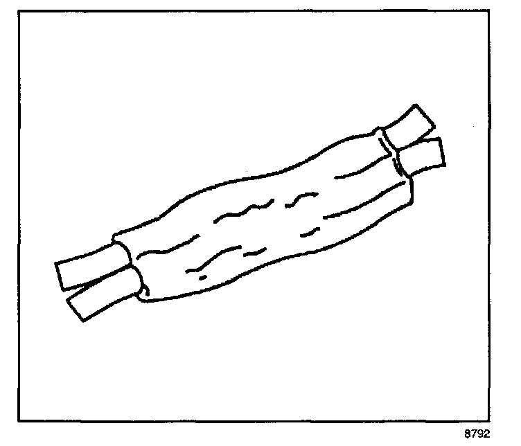 ^ Ensure that each splice is at least 40 mm (1.5 in) away from other splices, harness branches and connectors. This helps prevent moisture from bridging adjacent splices and causing damage.