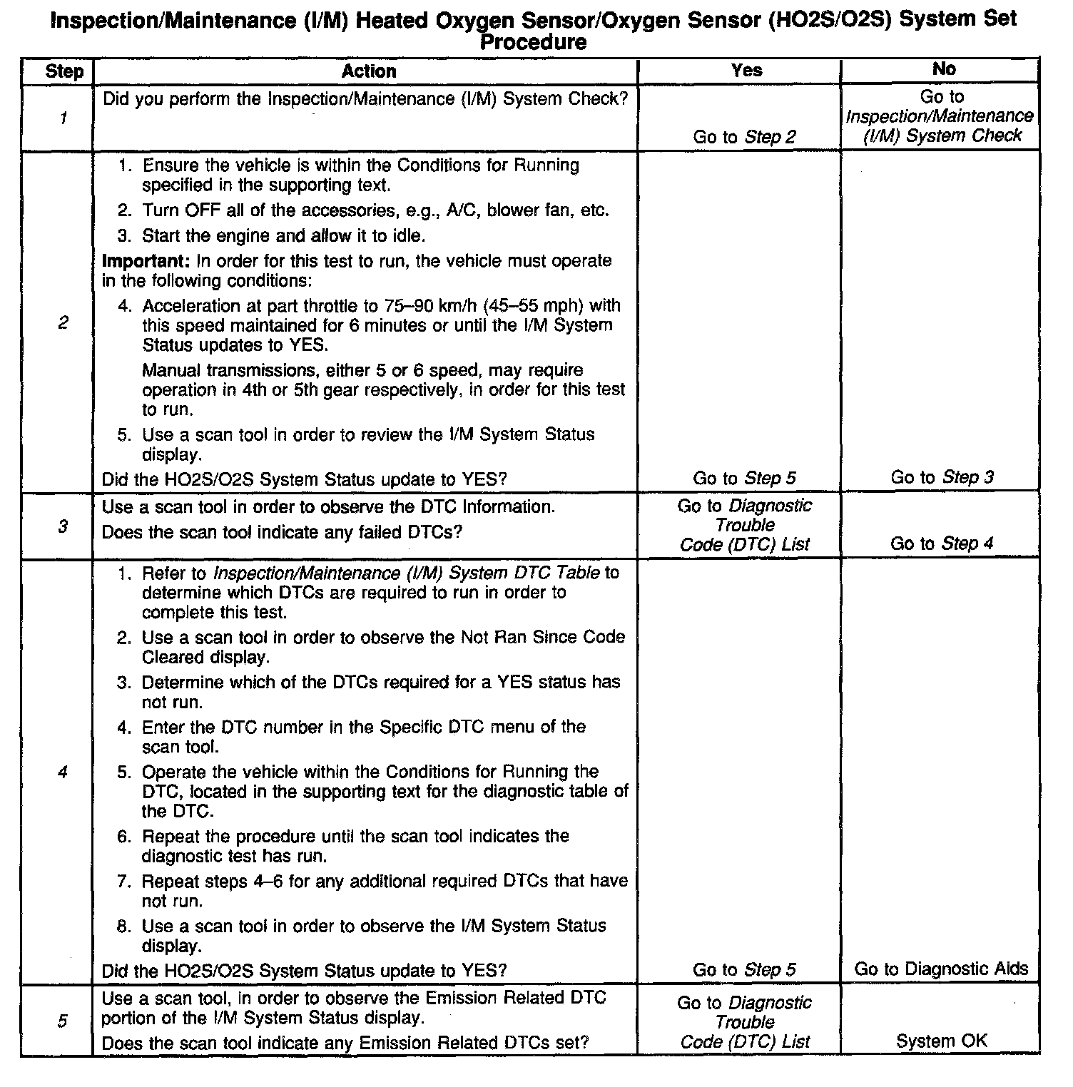 5. The I/M System Status only reports on whether or not a diagnostic has run, not what the outcome of the test was. If any Emission Related DTC sets after the tests are complete, the DTC will require diagnosis.