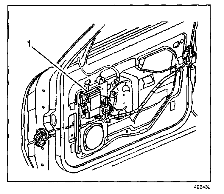 1. Install the door control module (1) onto the studs in the door.