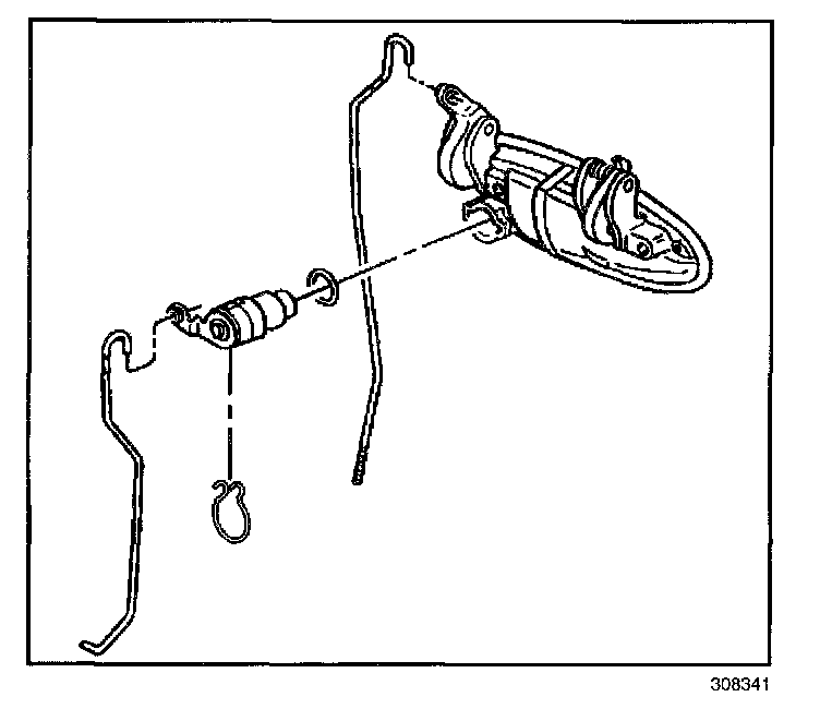 The door locks use the fork bolt lock design which includes a safety interlock feature. The door is secured in a closed position when the door lock fork bolt engages the striker. Lock the doors from the inside by sliding the lock knob rearward. The door may also be locked by using the key.Removal Procedure