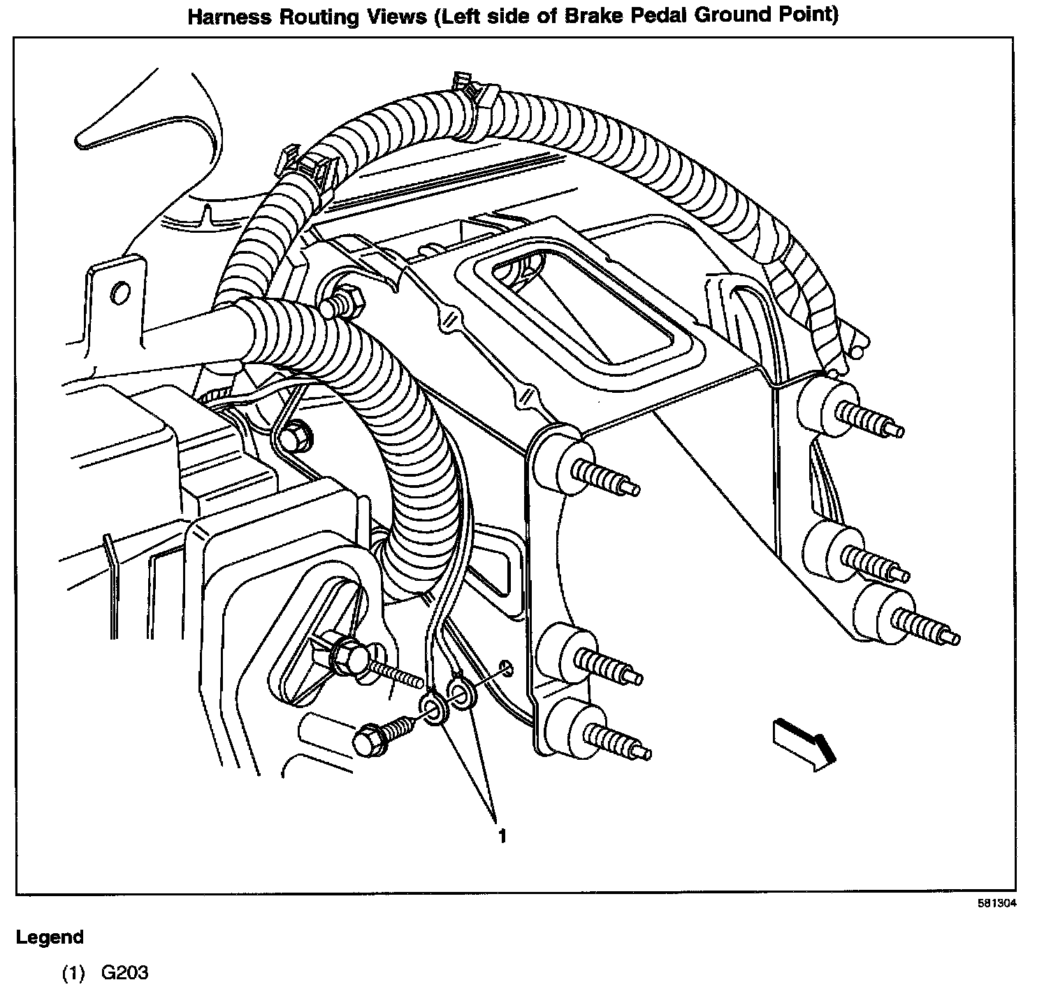 Harness Routing Views (Left Side Of Brake Pedal Ground Point):