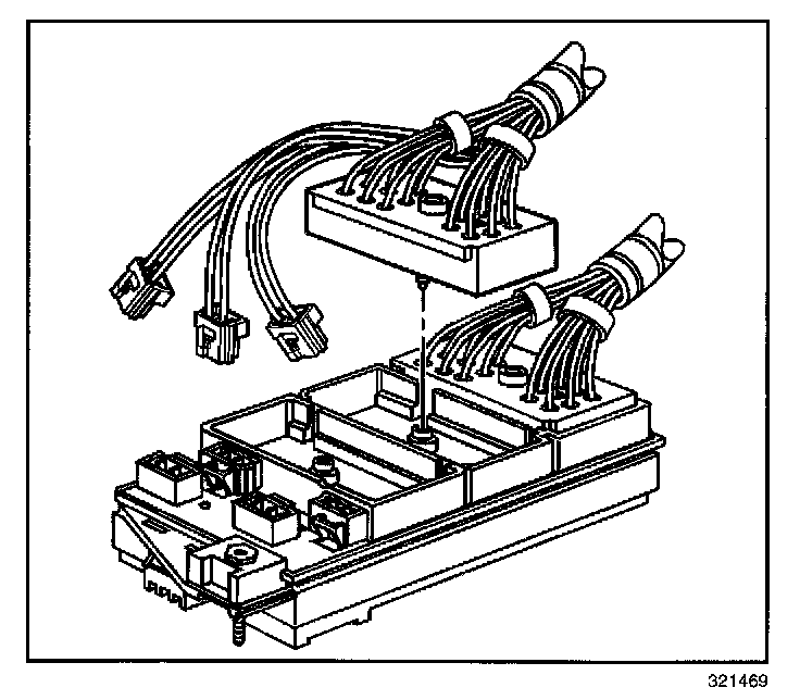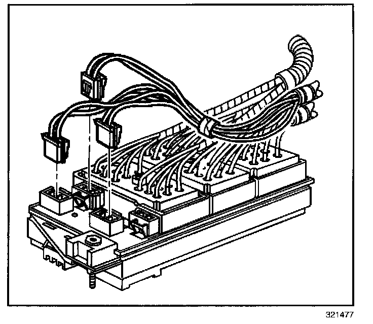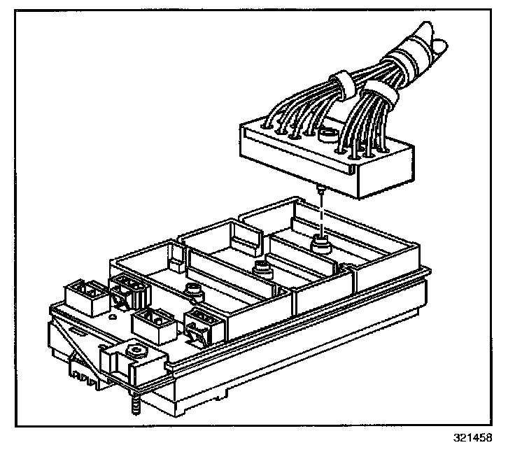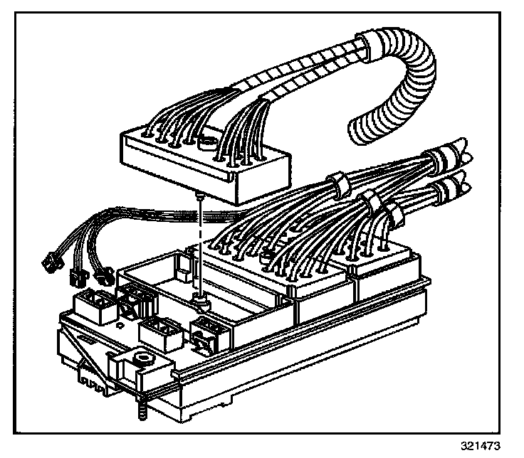 5. Tighten the bolts retaining the engine, IP and forward lamp wiring harness connectors to the junction block.