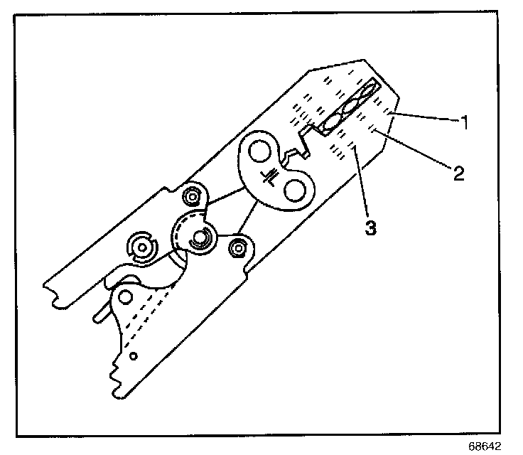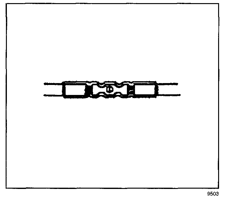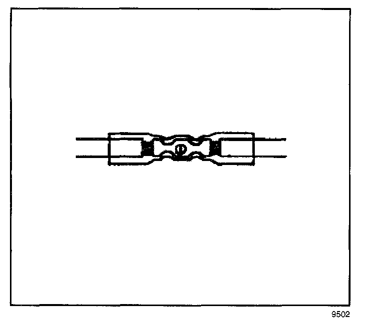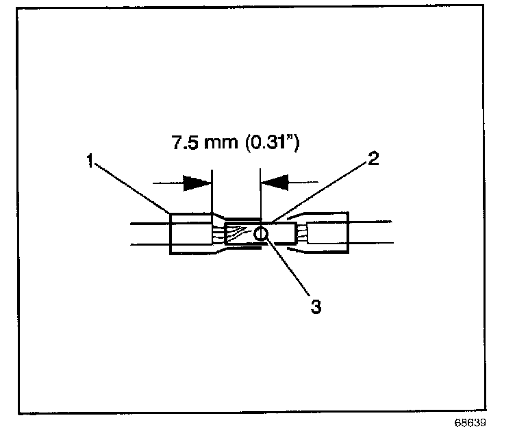6. Place the splice sleeve in the nest. Ensure that the crimp falls midway between the end of the barrel and the stop. The sleeve has a stop (3) in the middle of the barrel (2) in order to prevent the wire (1) from going further. Close the hand crimper handles slightly in order to firmly hold the splice sleeve in the proper nest.