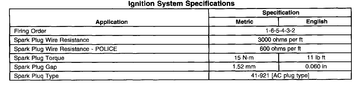 Ignition System Specifications: