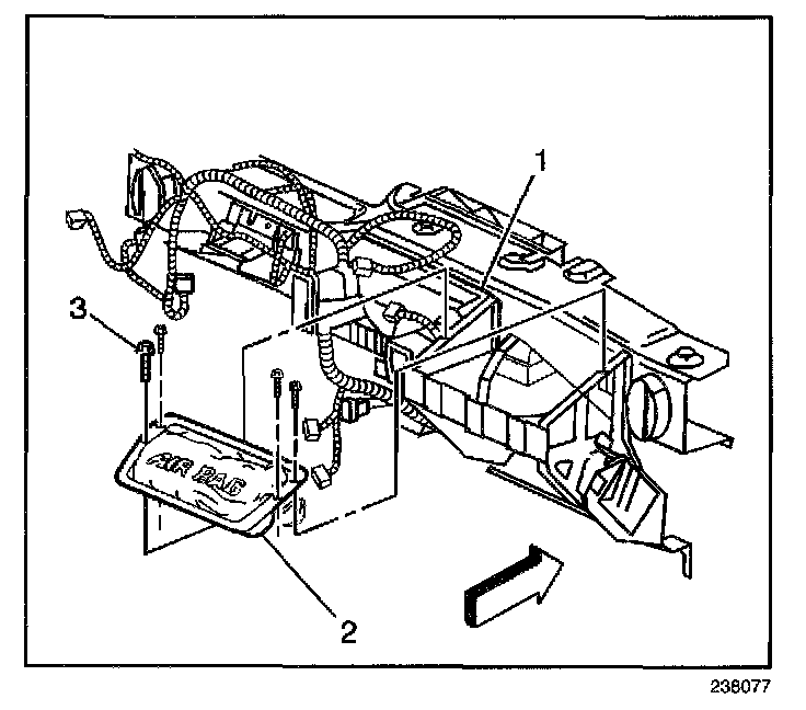 3. Remove the inflatable restraint IP module mounting fasteners (3).