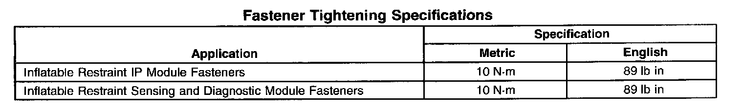 Fastener Tightening Specifications: