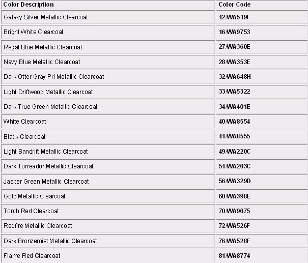 Paint Code Charts