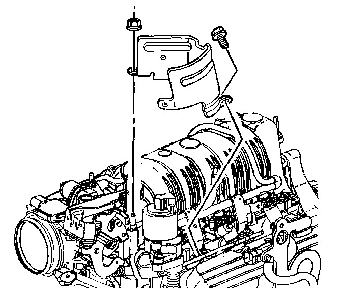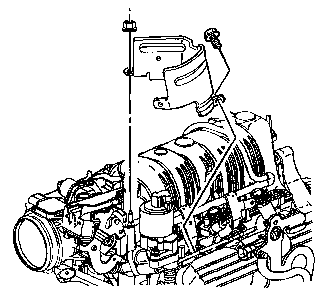 10. Remove the exhaust gas recirculation (EGR) valve wiring harness heat shield nut, bolt and the EGR heat shield.